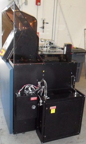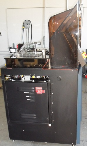 The Hine Design Send/Receive Indexers are mounted on the top-front plates of the AutoEtch. The send Indexer will load one wafer at a time onto the wafer belt drive system. The receive Indexer takes processed wafers from the belt drive system and stores them in the receive cassette.